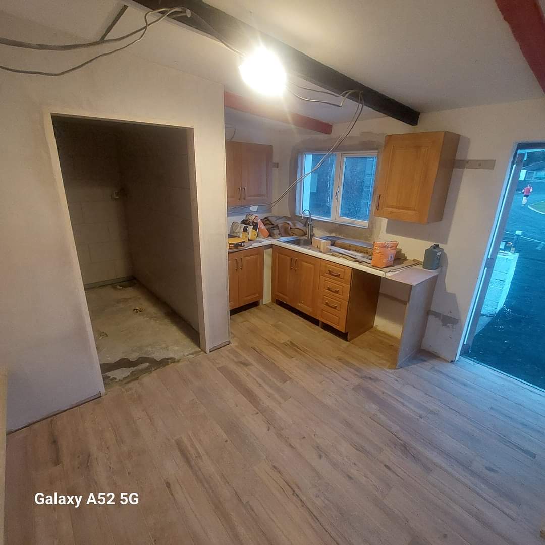 From demolition work, stud work, plastering, tiling, carpentry, window and door replacement, wheelchair ramp and railings, wet room floor, power washing to coat hooks and bench seating and more. Lads, take a bow. It was an amazing transformation.