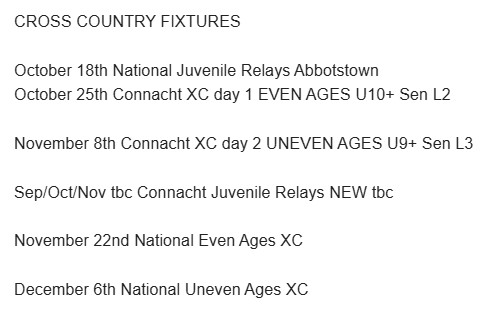 13th, Saturday, Connacht Outdoors Day 2, (U13 + Up) venue tbc