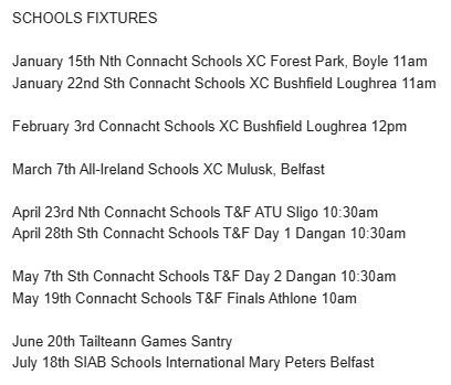 28th & 29th, Saturday & Sunday, National Juveniles Indoors, U12 + Day 3 TUS, Athlone