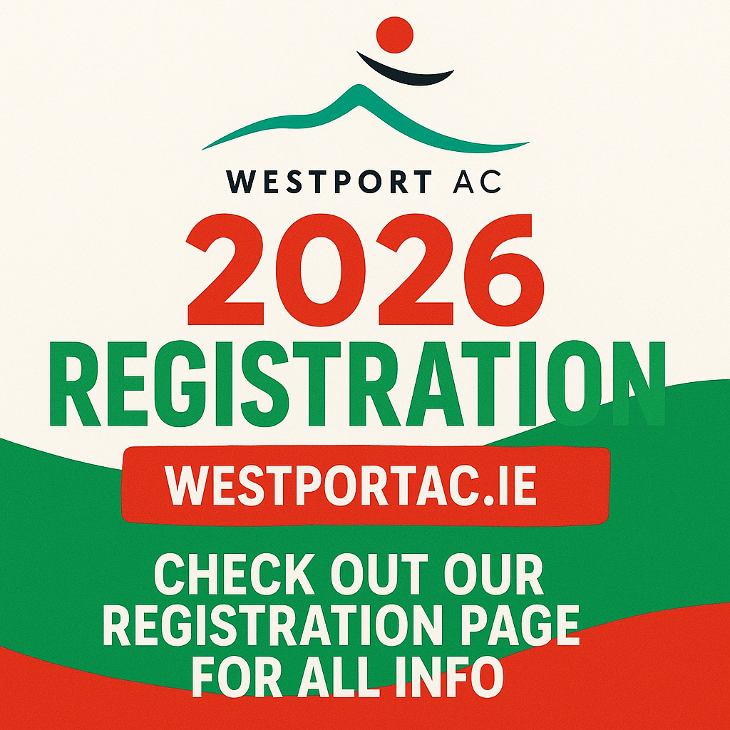 Westport AC is the largest Juvenile Athletics club in Mayo and the seventh largest in Ireland in the latest Athletics Ireland club membership report.  Out of the 366 affiliated clubs with Athletics Ireland, Westport AC is currently 20th overall.