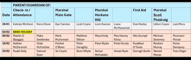 Traffic Marshall – at Horkan’s Hill and Scoil Phadraig during drop-off and pick-up